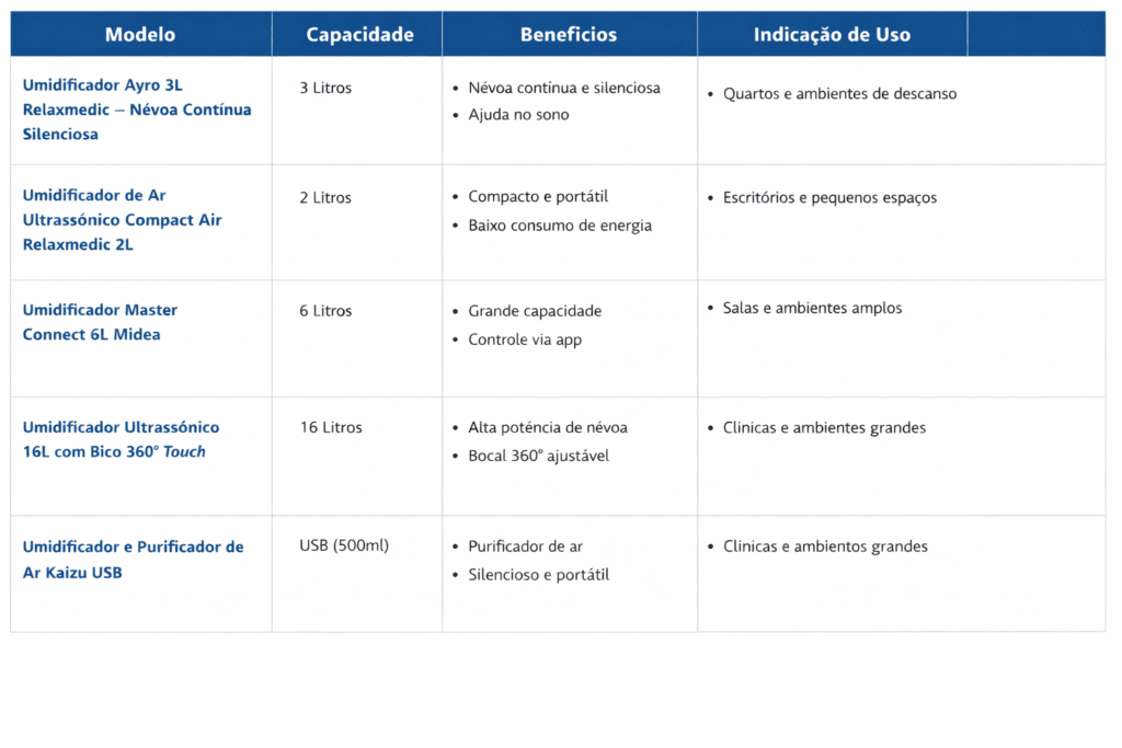 Comparação dos Principais Modelos de Umidificadores de Ar